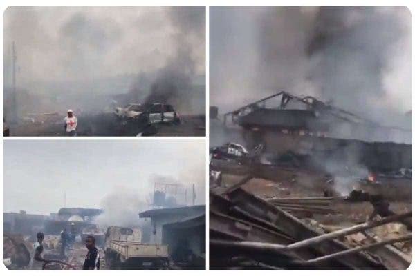 A loud explosion shook the Ajuwon, in the Iju area of Lagos shortly before 3:30 this afternoon as thick smoke billowed into the sky.