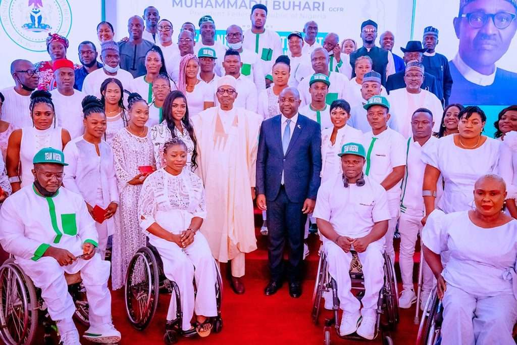 The President who described the athletes as champions, worthy ambassadors, national heroes and heroines, heaped praises on them for proudly flying the Nigerian flag in nine sporting events.