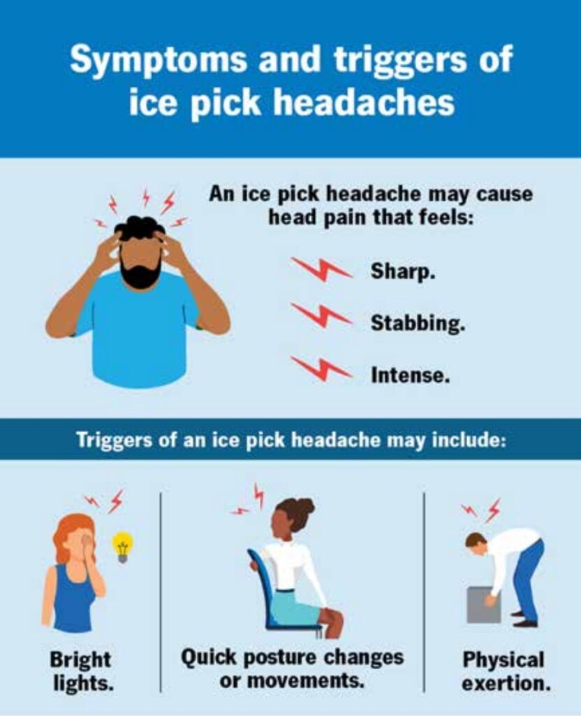 If you’ve ever experienced a headache that felt like a jolt of electricity through your skull, you may have encountered an icepick headache. Typical symptoms include: