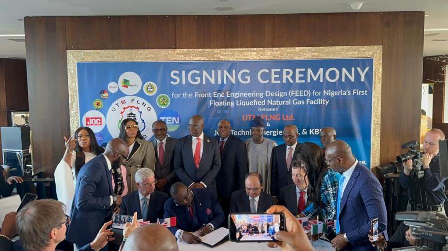 According to the minister, “It is an honor and a rare privilege to be part of this epoch gathering to witness the signing ceremony of the Front End Engineering Design (FEED) contract between UTM Floating LNG Limited, JGCcorporation, Technip Energies (T.EN) and KellogBrown & Root (KBR) Engineering Companies for the development of the first Floating Liquified Natural Gas (“FLNG”) Facility In Nigeria