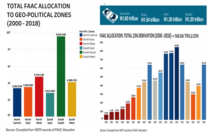 Empirical evidence tends to suggest that these perceptions are plausible even though the Federation has attempted, severally, to address or ameliorate them. Figure 1 shows that the Nigeria Federation through its Federal Government has attempted to diffuse agitations in the community using fiscal instruments such resources from 13% Derivation and NDDC Act etc. These resources conferred to the State governments to care for host communities hardly trickle down to the petroleum community in a large enough quantity to make the type of difference required in transforming the region.