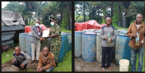 According to him, the suspects were arrested aboard a wooden boat on September 20, 2021 during a routine patrol along Effiat Creek, Ibaka, while conveying the drums containing the petroleum product to Bakassi.