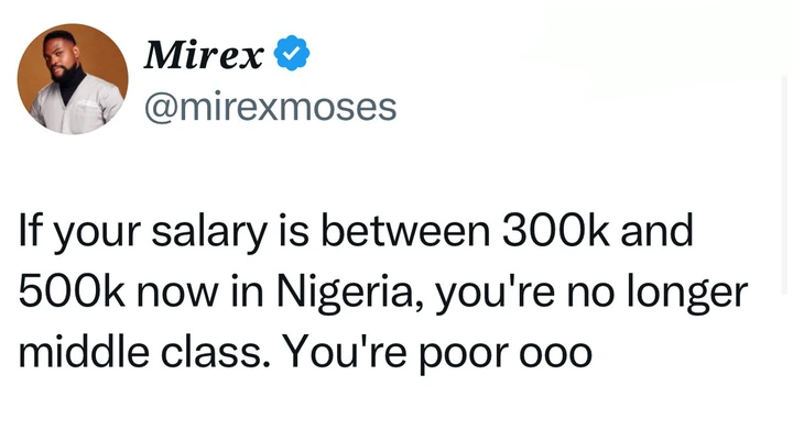 Some argue that earning N300,000 to N500,000 is fortunate, especially in a country where many survive on N20,000 to N30,000 a month. Imagine living on that with no benefits or job security— a stark reminder of Nigeria’s economy forcing people into survival mode. Labeling this income “poor” ignores the severe struggles most Nigerians face.